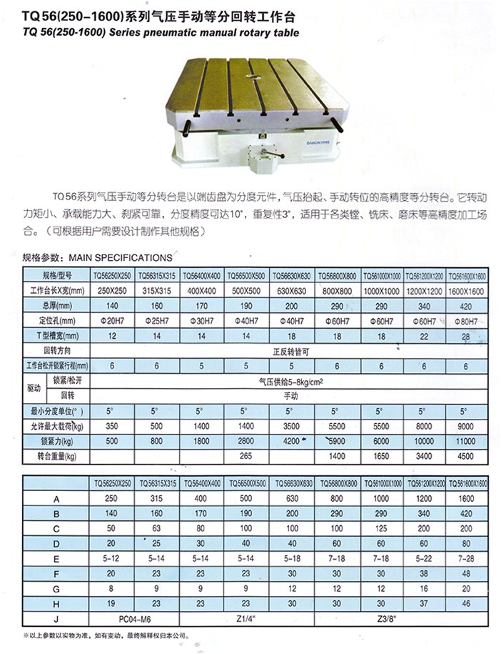 TQ56(250-1600)系列氣壓手動(dòng)等分回轉(zhuǎn)工作臺(tái)