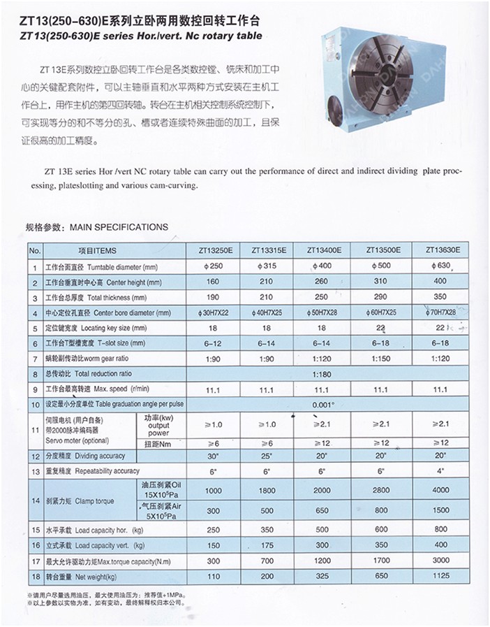 ZT13(250-630)E系列立臥兩用數(shù)控回轉(zhuǎn)工作臺