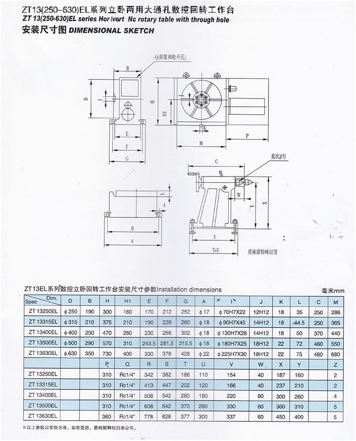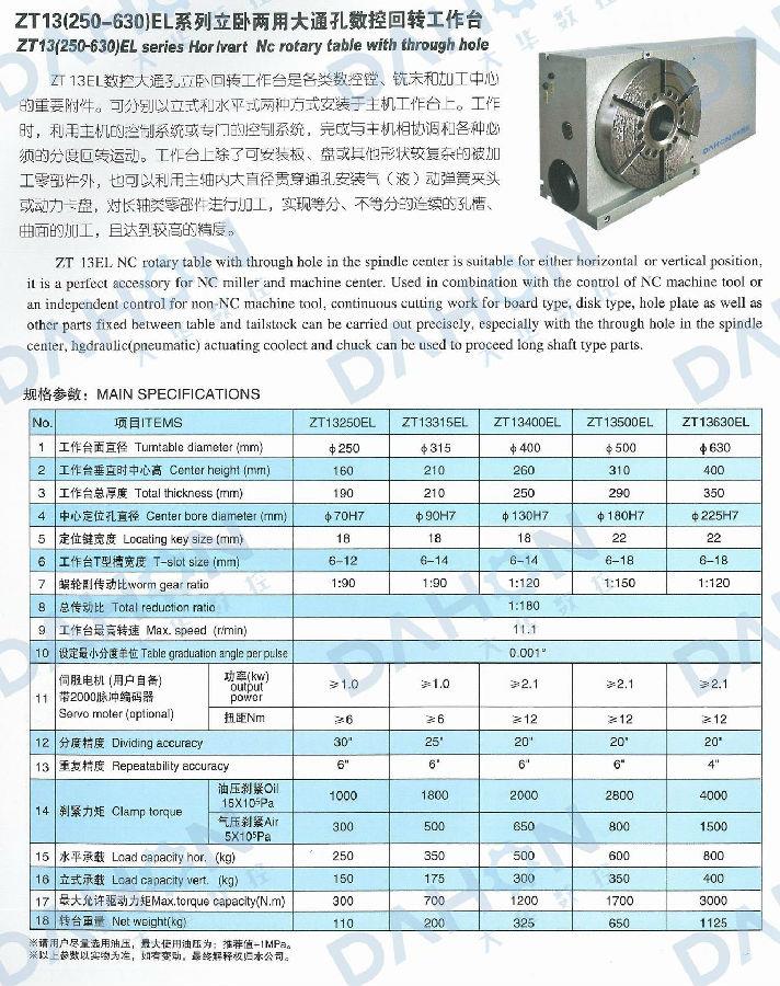 ZT13EL數(shù)控大通孔立臥回轉(zhuǎn)工作臺(tái)是各類數(shù)控鏜、銑床和加工中心的重要附件。可分別以立式和水平式兩種方式安裝于主機(jī)工作臺(tái)上。工作時(shí),利用主機(jī)的控制系統(tǒng)或?qū)iT的控制系統(tǒng),完成與主機(jī)相協(xié)調(diào)和各種必須的分度回轉(zhuǎn)運(yùn)動(dòng)。工作臺(tái)上除了可安裝板、盤或其他形狀較復(fù)雜的被加工零部件外,也可以利用主軸內(nèi)大直徑貫穿通孔安裝氣(液)動(dòng)彈簧夾頭或動(dòng)力卡盤,對(duì)長(zhǎng)軸類零部件進(jìn)行加工,實(shí)現(xiàn)等分、不等分的連續(xù)的孔槽、曲面的加工,且達(dá)到較高的精度。