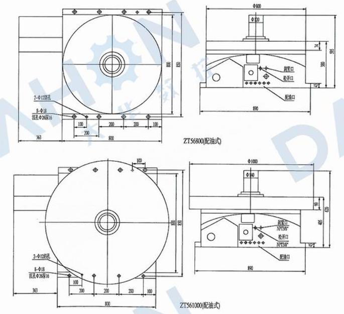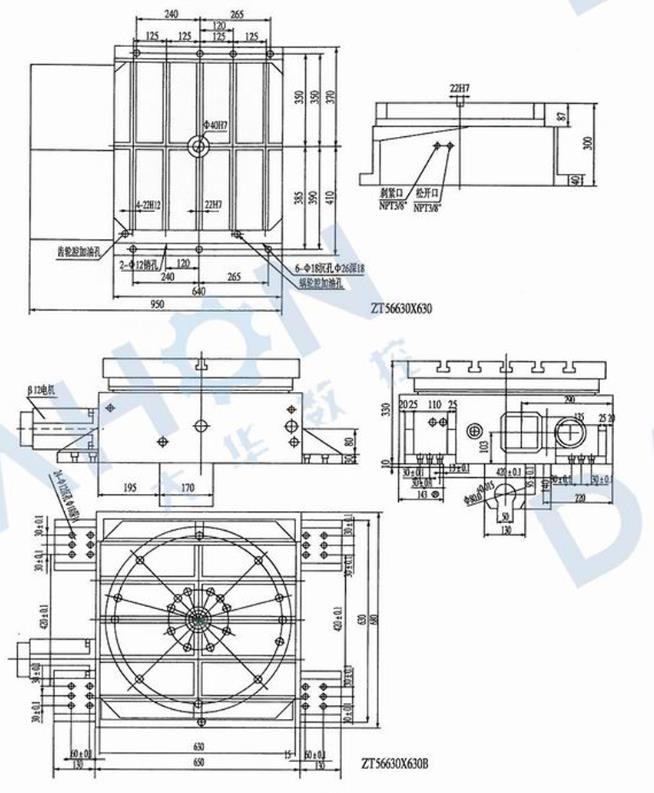 返回ZT56(630-1000)系列數(shù)控等分回轉(zhuǎn)工作臺用于數(shù)控銑、鏜床及加工中心加工等分零件的加工,它采用伺服電機(jī)驅(qū)動,三聯(lián)齒盤精確定位,具有精度高、載重大、精度保持性好等特點(diǎn)。(工作臺可根據(jù)用戶要求訂做圓形或矩形)